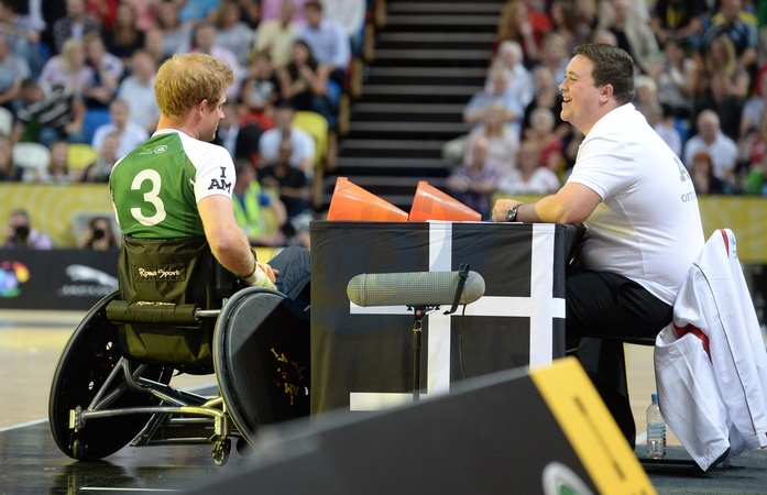 Ksiaze Harry na wozku inwalidzkim podczas gry - Invictus Games 2014