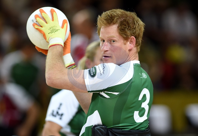Ksiaze Harry na wozku inwalidzkim podczas gry - Invictus Games 2014