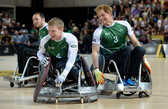 Ksiaze Harry na wozku inwalidzkim podczas gry - Invictus Games 2014