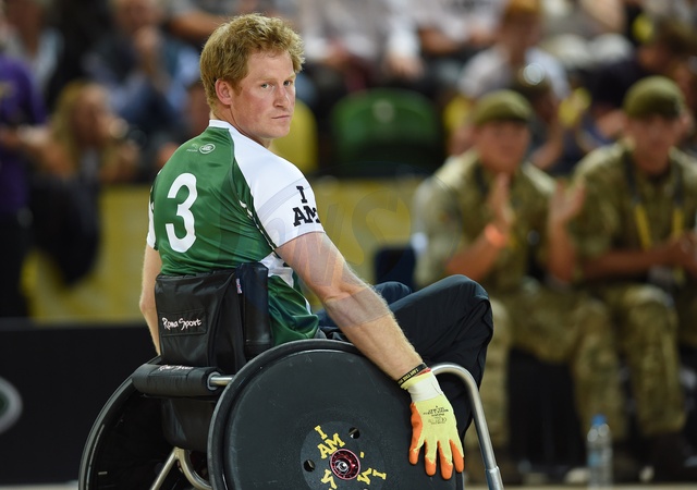 Ksiaze Harry na wozku inwalidzkim podczas gry - Invictus Games 2014