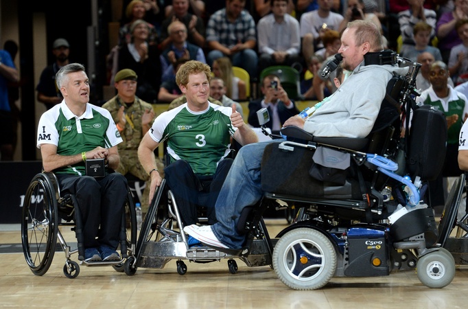 Ksiaze Harry na wozku inwalidzkim podczas gry - Invictus Games 2014