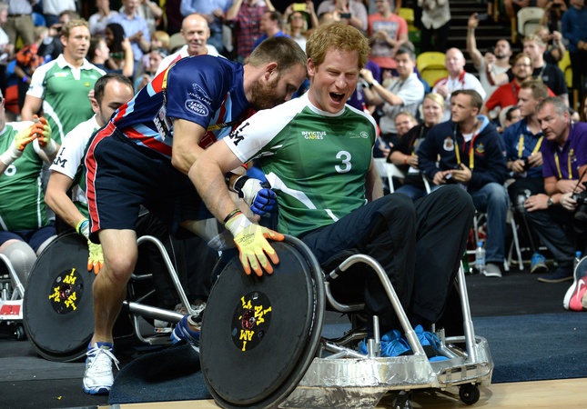 Ksiaze Harry na wozku inwalidzkim podczas gry - Invictus Games 2014