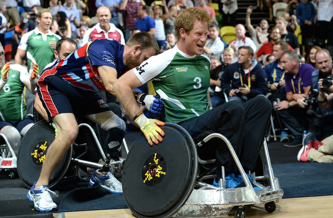 Ksiaze Harry na wozku inwalidzkim podczas gry - Invictus Games 2014