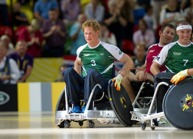 Ksiaze Harry na wozku inwalidzkim podczas gry - Invictus Games 2014
