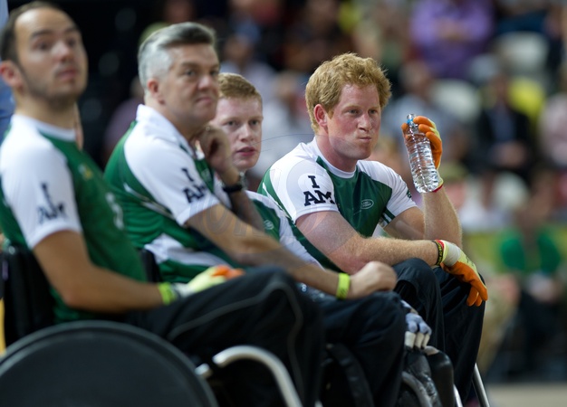 Ksiaze Harry na wozku inwalidzkim podczas gry - Invictus Games 2014