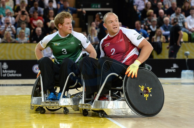 Ksiaze Harry na wozku inwalidzkim podczas gry - Invictus Games 2014