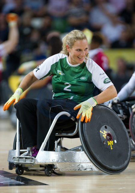Ksiaze Harry na wozku inwalidzkim podczas gry - Invictus Games 2014
