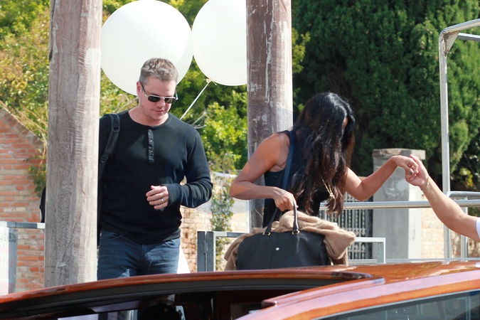 Matt Damon z zona przybyl do Wenecji na slub Clooneya