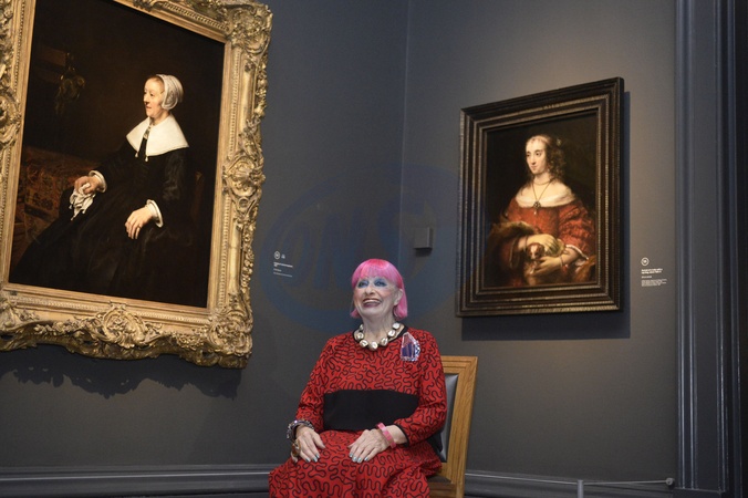 Projektantka mody Zandra Rhodes pozuje w galerii sztuki