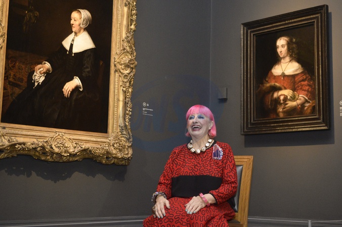 Projektantka mody Zandra Rhodes pozuje w galerii sztuki