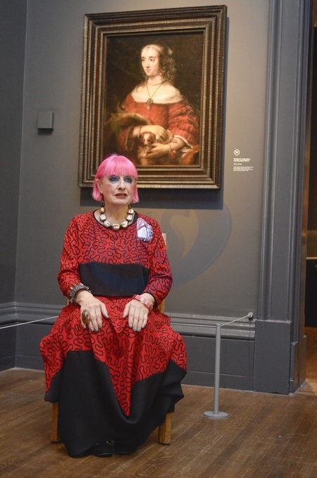 Projektantka mody Zandra Rhodes pozuje w galerii sztuki