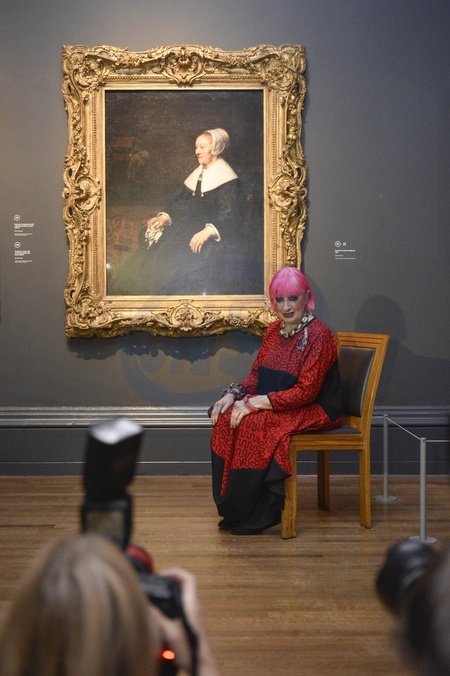 Projektantka mody Zandra Rhodes pozuje w galerii sztuki