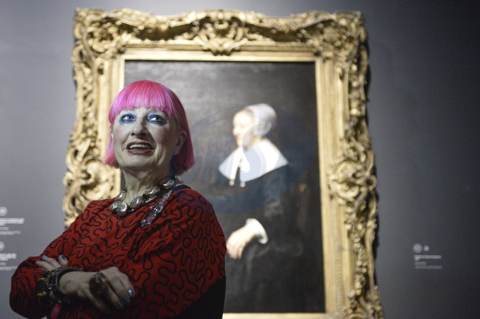Projektantka mody Zandra Rhodes pozuje w galerii sztuki
