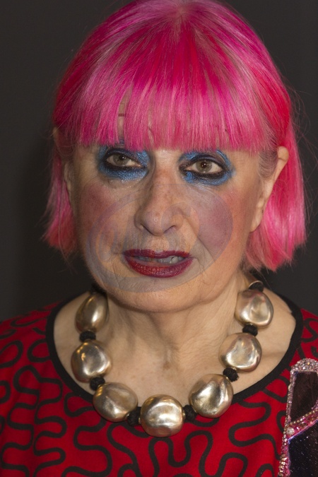 Projektantka mody Zandra Rhodes pozuje w galerii sztuki