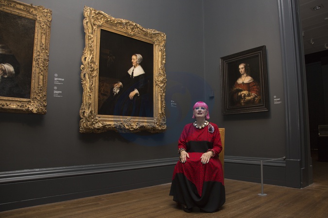 Projektantka mody Zandra Rhodes pozuje w galerii sztuki