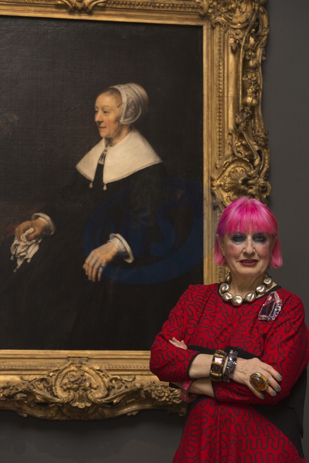Projektantka mody Zandra Rhodes pozuje w galerii sztuki