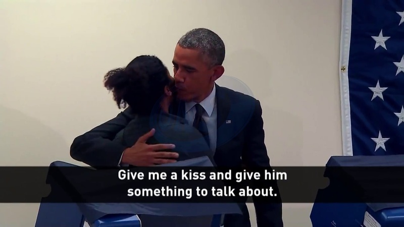 Barack Obama glosuje obok mlodej dziewczyny