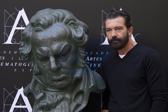 Zarosniety Antonio Banderas - zwyciezca ''Goya Award'' w Madrycie