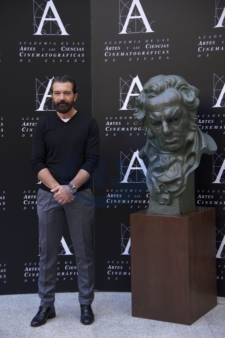 Zarosniety Antonio Banderas - zwyciezca ''Goya Award'' w Madrycie