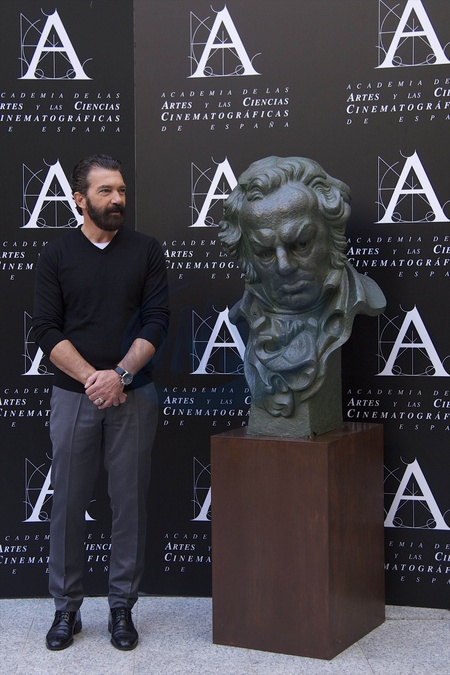 Zarosniety Antonio Banderas - zwyciezca ''Goya Award'' w Madrycie