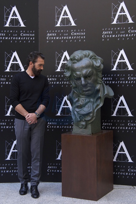 Zarosniety Antonio Banderas - zwyciezca ''Goya Award'' w Madrycie