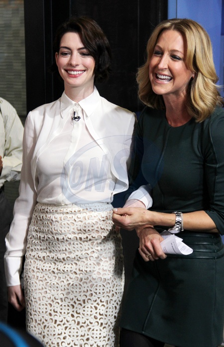 Anne Hathaway ubrana na bialo w Good Morning America, Nowy Jork