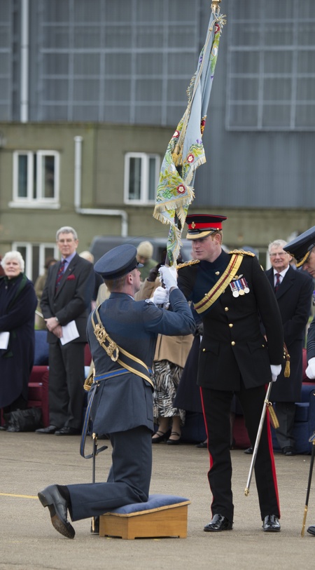 Ksiaze Harry w mundurze na paradzie Royal Air Force Honington
