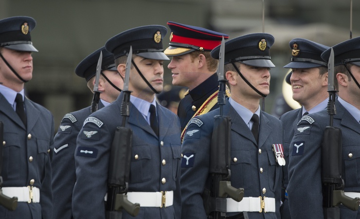 Ksiaze Harry w mundurze na paradzie Royal Air Force Honington