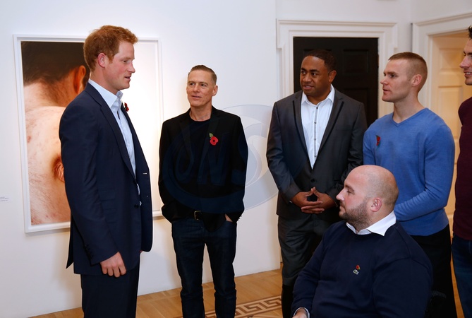Ksiaze Harry spotkal sie z weteranami z Afganistanu na wystawie fotografii Bryana Adamsa