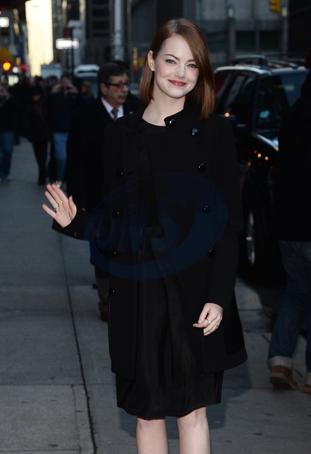 Emma Stone przybyla do show DavidaLettermana w Nowym Jorku