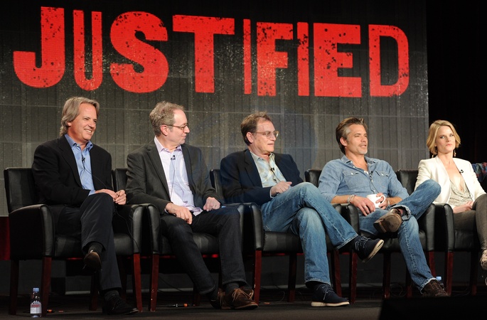 Graham Yost, Fred Golan, Michael Dinner, Timothy Olyphant, Cast Member Joelle Carter