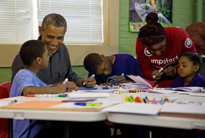 Barack Obama z rodzina podczas Literacy Service Project