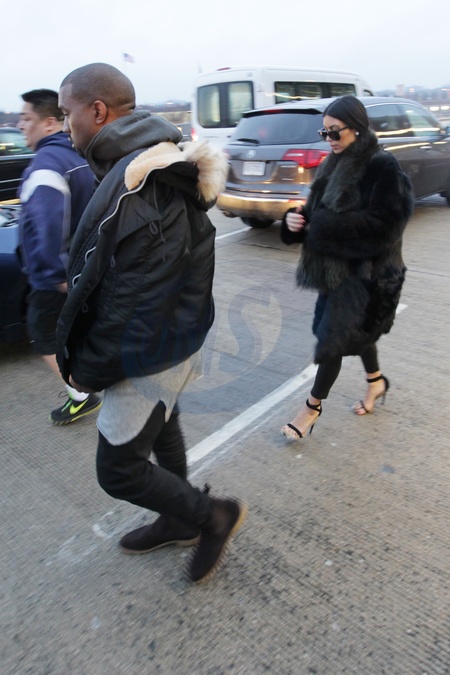 Kanye West i Kim Kardashian w futrze na lotnisku