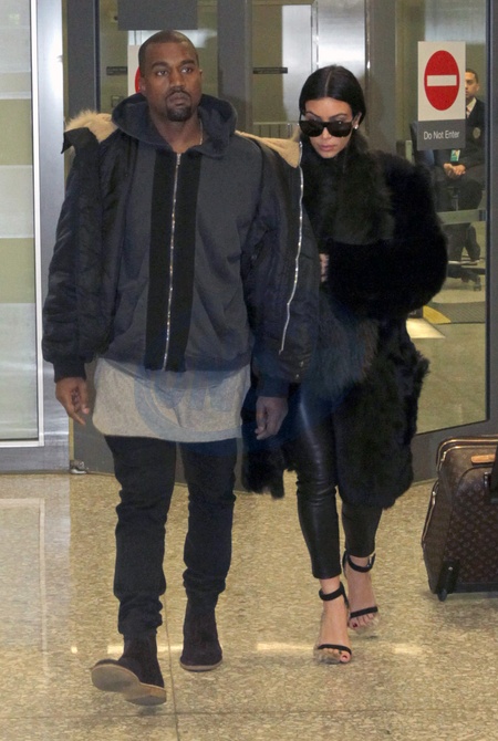 Kanye West i Kim Kardashian w futrze na lotnisku