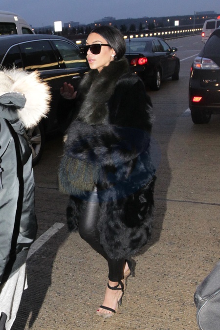 Kanye West i Kim Kardashian w futrze na lotnisku