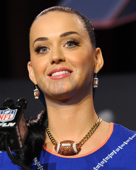 Katy Perry przemawia podczas Pepsi Super Bowl XLIX Halftime show