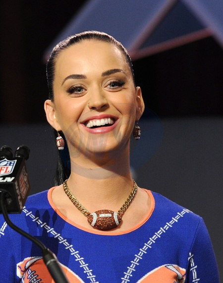 Katy Perry przemawia podczas Pepsi Super Bowl XLIX Halftime show