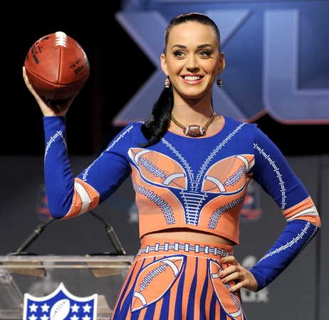Katy Perry przemawia podczas Pepsi Super Bowl XLIX Halftime show