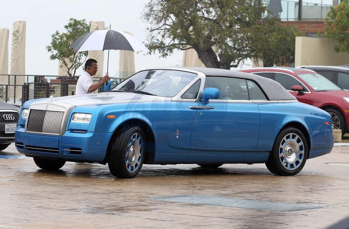 Johnny Hallyday z zona wysiada z niebieskiego Rolls-Royce