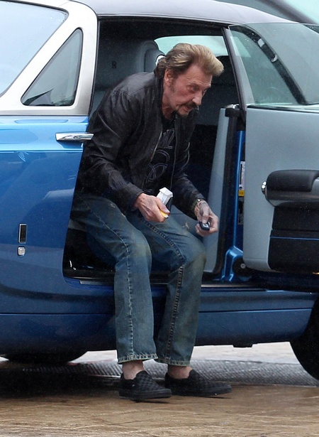 Johnny Hallyday z zona wysiada z niebieskiego Rolls-Royce