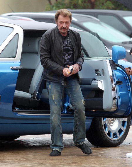 Johnny Hallyday z zona wysiada z niebieskiego Rolls-Royce