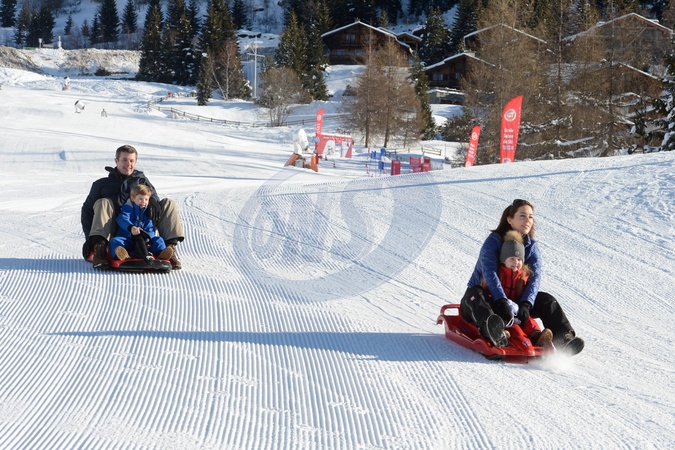 Ksiaze Frederik i Ksiezna Mary z dziecmi na sniegu w Szwajcarii