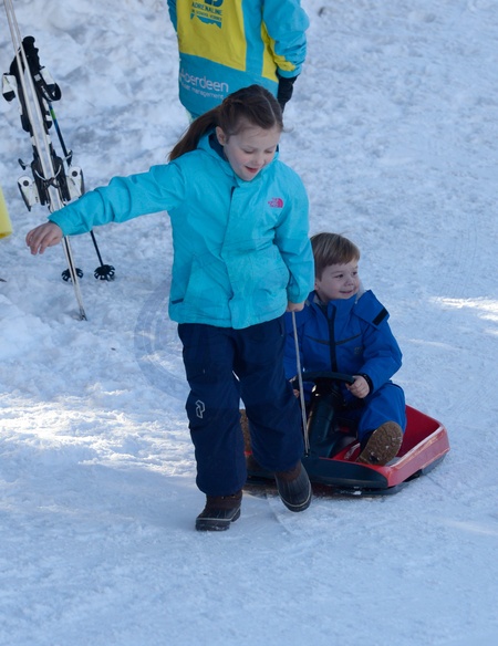 Ksiaze Frederik i Ksiezna Mary z dziecmi na sniegu w Szwajcarii