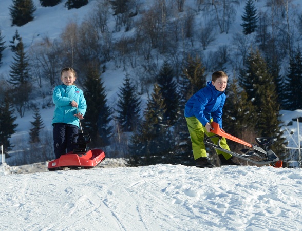 Ksiaze Frederik i Ksiezna Mary z dziecmi na sniegu w Szwajcarii