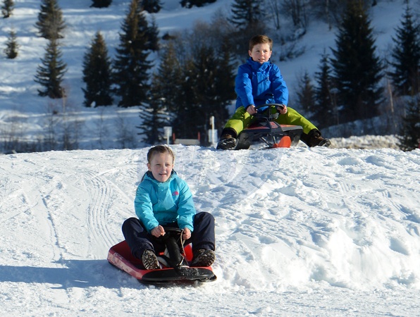 Ksiaze Frederik i Ksiezna Mary z dziecmi na sniegu w Szwajcarii