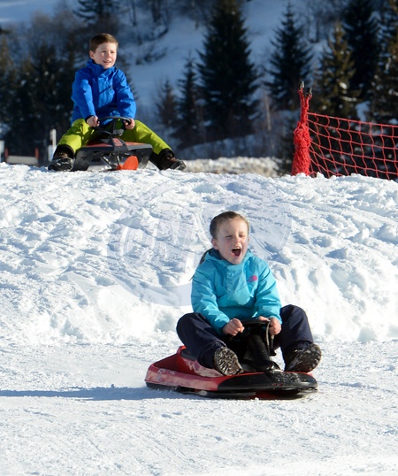 Ksiaze Frederik i Ksiezna Mary z dziecmi na sniegu w Szwajcarii