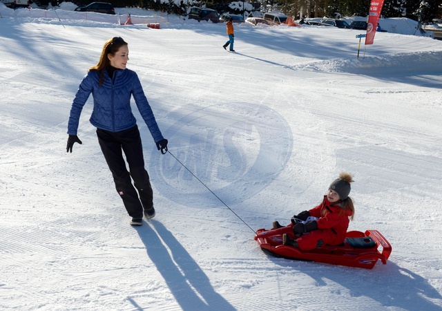 Ksiaze Frederik i Ksiezna Mary z dziecmi na sniegu w Szwajcarii