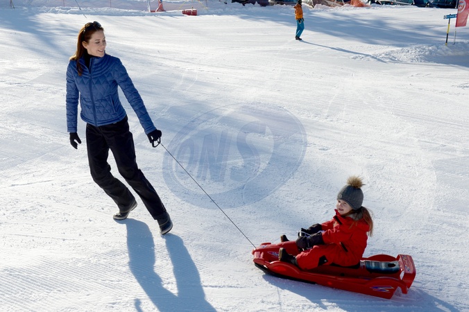 Ksiaze Frederik i Ksiezna Mary z dziecmi na sniegu w Szwajcarii