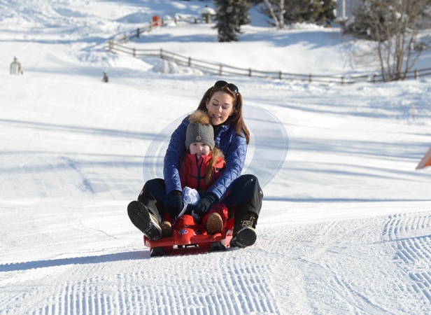 Ksiaze Frederik i Ksiezna Mary z dziecmi na sniegu w Szwajcarii