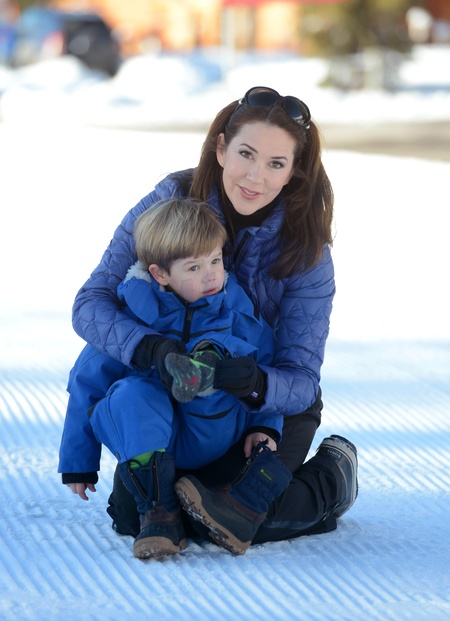 Ksiaze Frederik i Ksiezna Mary z dziecmi na sniegu w Szwajcarii